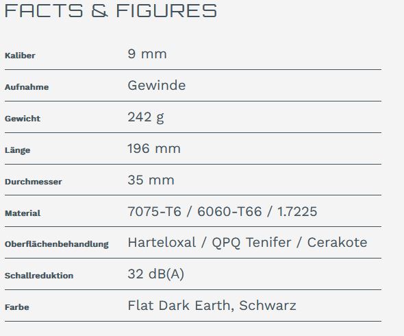 Die Angabe zur Schallreduktion stellt die Differenz der logarithmischen Mittelwerte aus jeweils 5 Schuss (ohne / mit Schalldämpfer) dar.